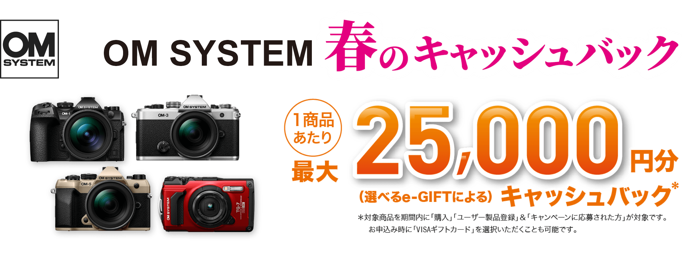 - 本キャンペーンは、キャンペーン期間中に対象商品をご購入いただいたお客さまが対象となります。なお、OM-3 ASTROは本キャンペーンの対象外となりますので、あらかじめご了承ください。