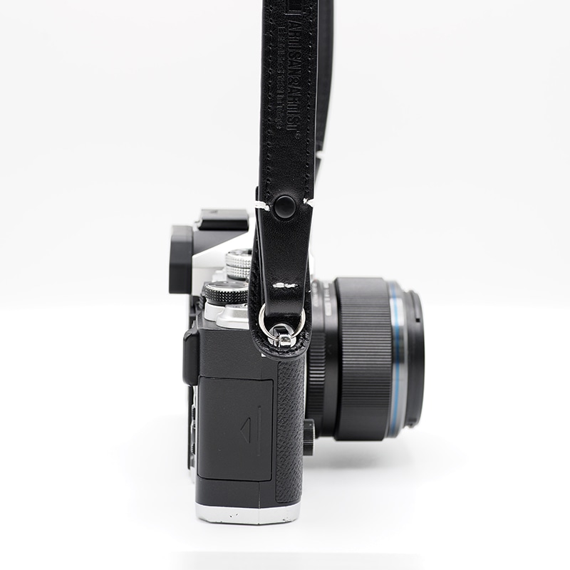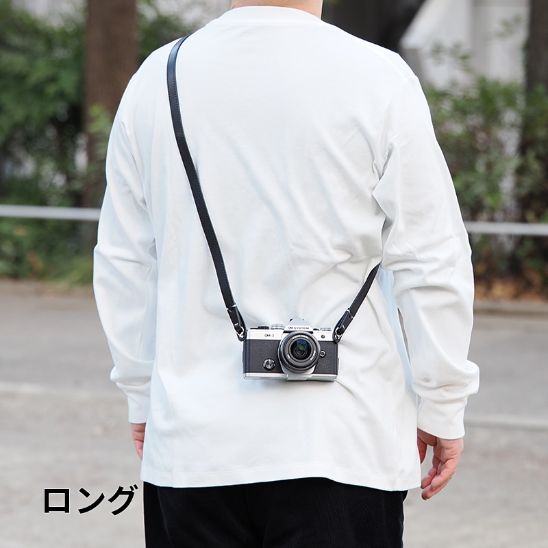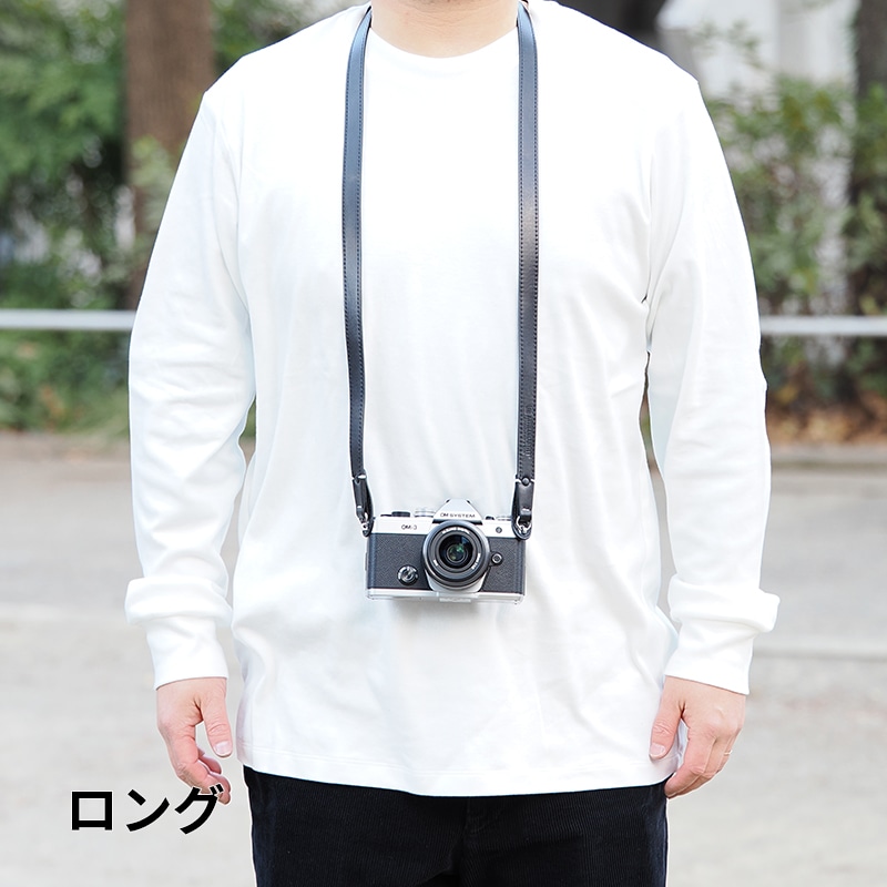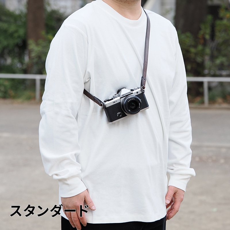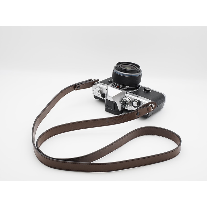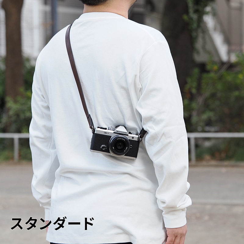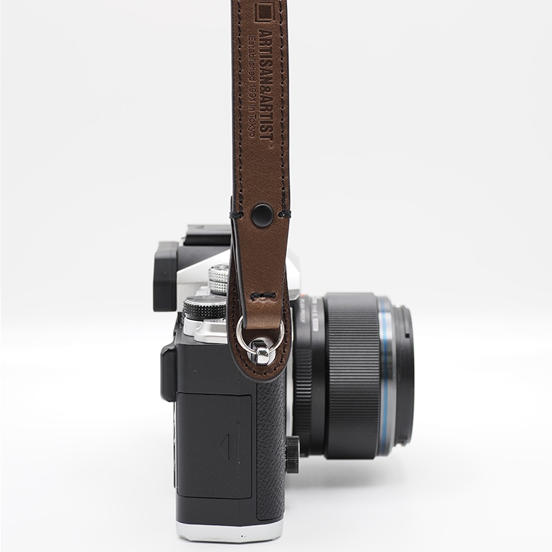 なめらかな手触りと首に掛けた際の心地良さ、そして洗練されたルックスは、クラシックな機種からモダンな機種まで、様々なカメラにマッチします。上質なヌメ革ならではの、使いこむ程に増していくしなやかなフィット感をお楽しみください。ストラップのアクセントにもなっている、熟練職人によるハンドステッチは、ブラックモデルにはカメラ機体の刻印をイメージしたホワイトのアクセントカラーを、ダークブラウンには全体の印象を引き締めるブラックを施しました。深くはっきりとしたエッジと光沢感が美しい素押しのロゴが、レザーの美しさを引き立てています。スマートな見た目と実用性のバランスを考慮し、幅は18mmに設定。取り回しやすく、付け外しが簡単なステンレス小型リングを採用しています。カメラ愛好家やフォトグラファーにとって、洗練されたデザインと機能性が魅力のアイテムです。