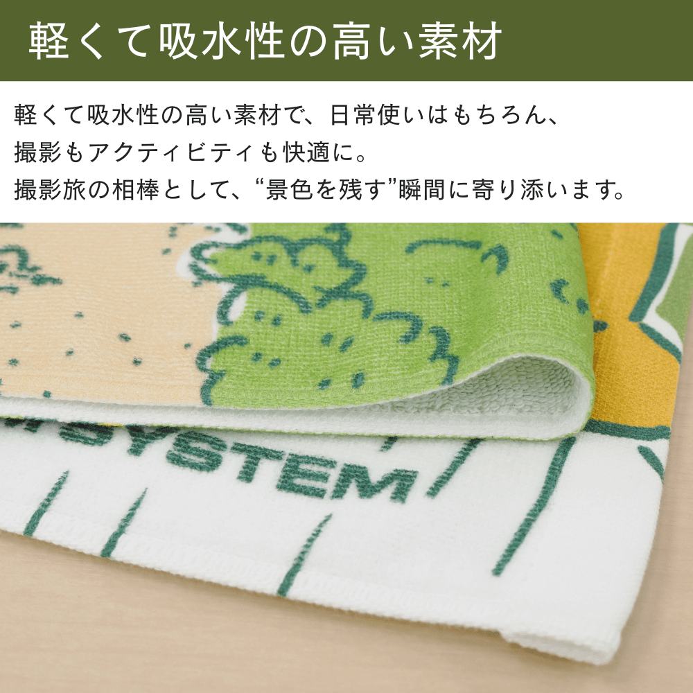軽くて吸水性の高い、アウトドアでも日常でも使えるフィールドギア。自然の中で感じた景色と冒険の記憶を、タオルという“形”に。