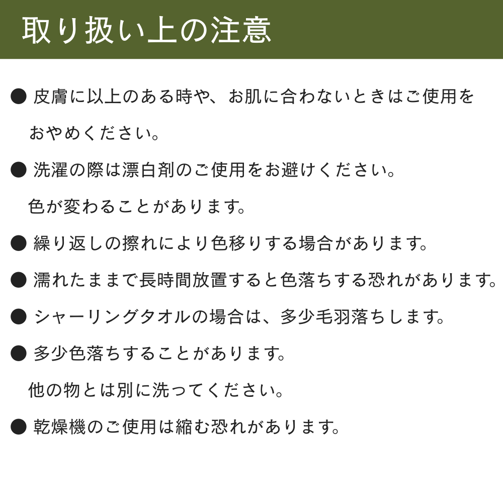 ●シャーリングタオルの場合は、多少毛羽落ちします。
