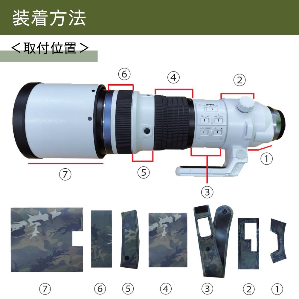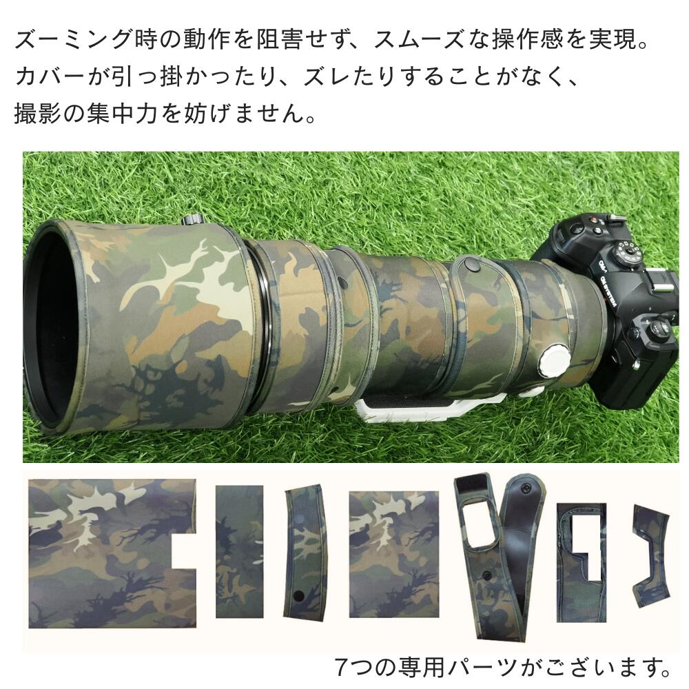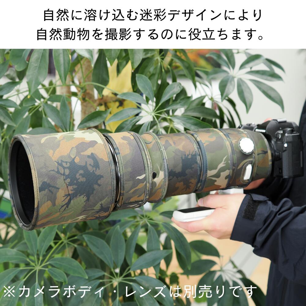望遠レンズの鏡筒をキズから守る、高級感のあるオリジナル迷彩柄を採用した保護レンズカバー。