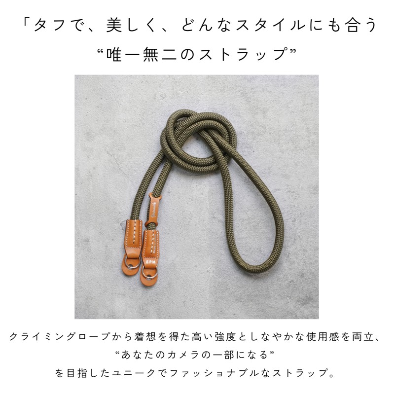 クライミングロープから着想を得た高い強度としなやかな使用感を両立、“あなたのカメラの一部になる” を目指したユニークでファッショナブルなストラップ。