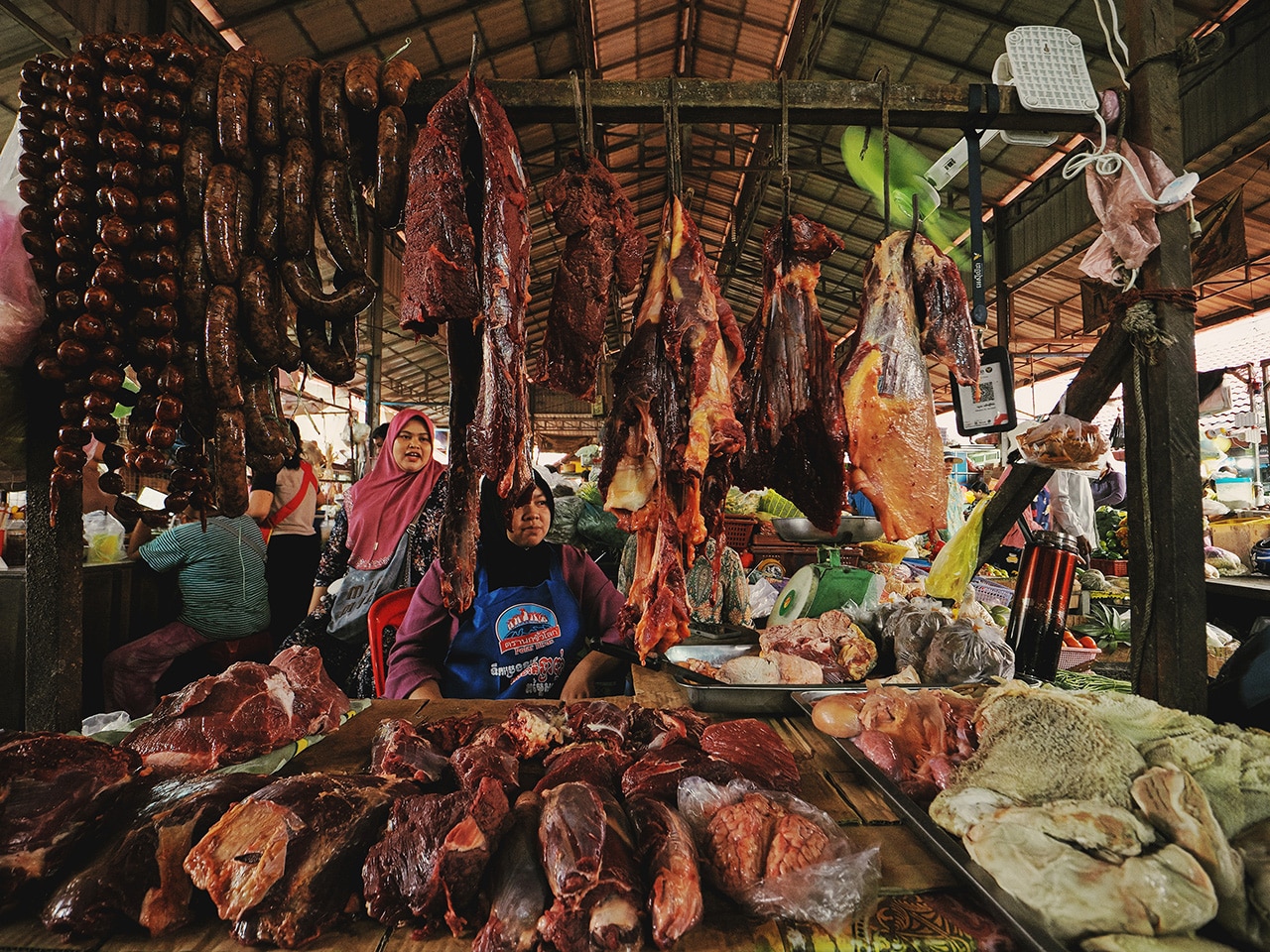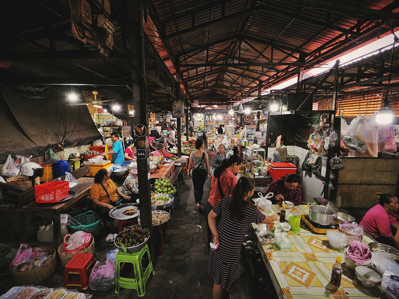 胡椒畑に向かう日、朝から滝のような雨が降っていてバイクに乗って長時間移動するのはちょっと厳しいと言うことで雨が止むまでカンポットの大きな市場に行きました。 市場は屋根があり自然光が入りにくいので想像している以上に暗い環境です。基本的に高感度での撮影になりますがOM-5 Mark IIの高感度画質は非常にクリーンで躊躇なく使用できます。またマイクロフォーサーズの被写界深度の深さがスナップ撮影で生きてきます。