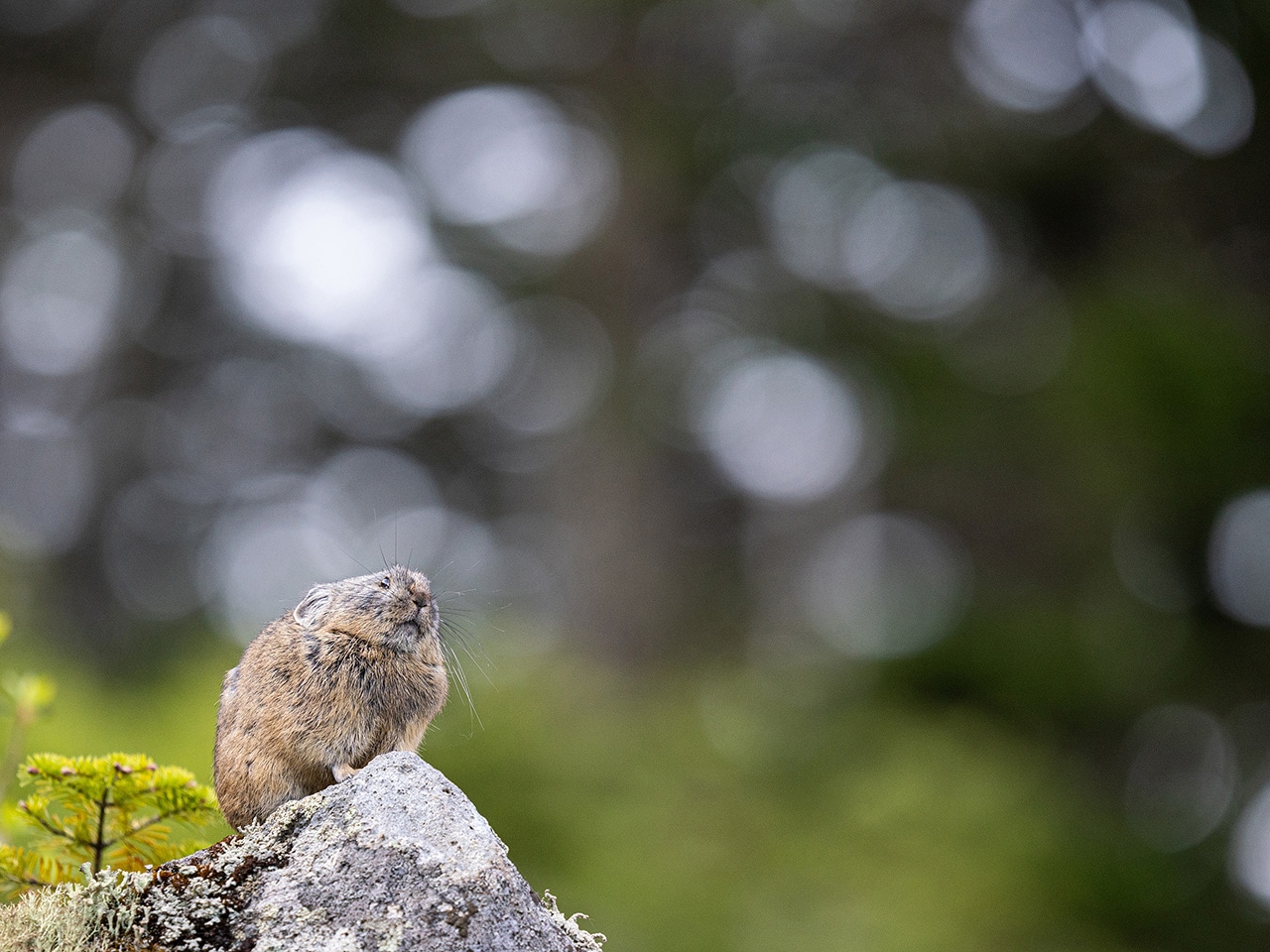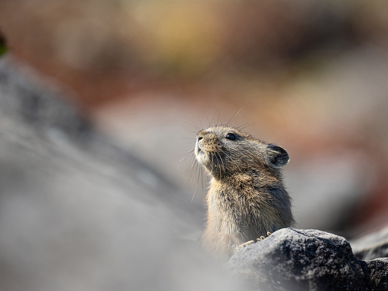 風景すべてをぼかしエゾナキウサギの肖像を表現した。