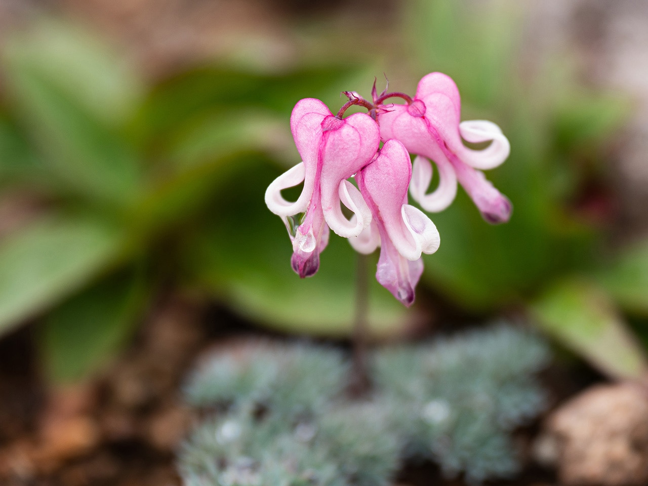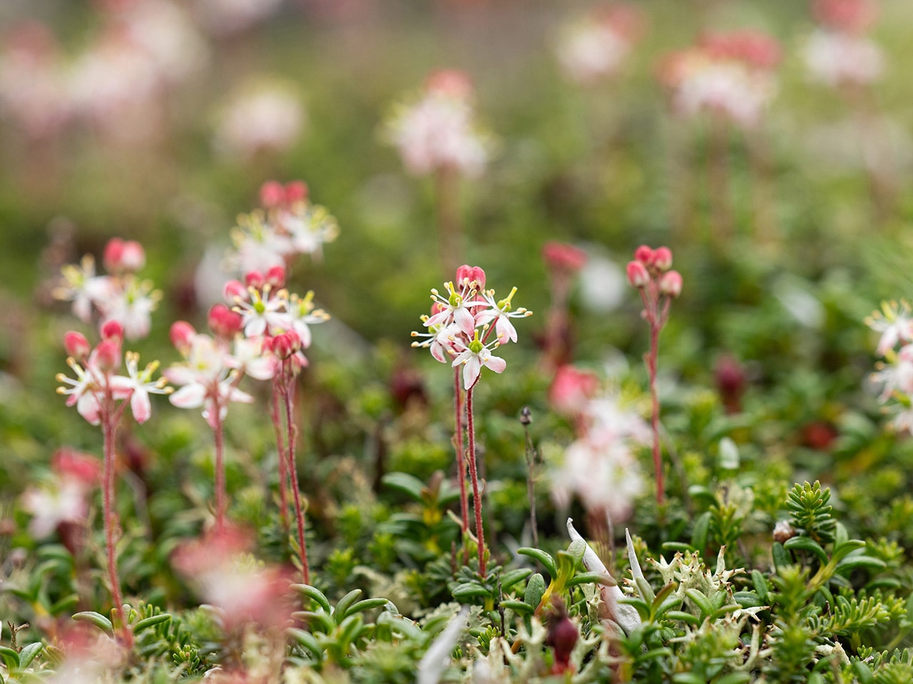 花びらの大きさは数ミリの小さな線香花火のようなチシマツガザクラ。地面に顔を付けながら撮影した。