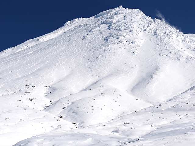 北海道最高峰・大雪山旭岳の冠雪した姿を、広角側の50mmと望遠側の200mmでそれぞれ撮影した。同じ山だが、印象が全く異なる表現が出来る。