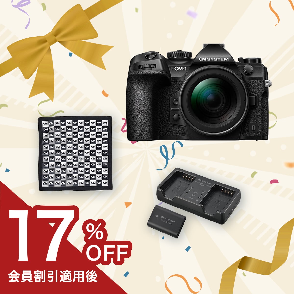 唯一無二、フラッグシップモデル「OM-1 Mark II」に、広角~中望遠までをカバーするPROレンズと、予備バッテリーを付けたお得なセット。長時間撮影したい方も安心