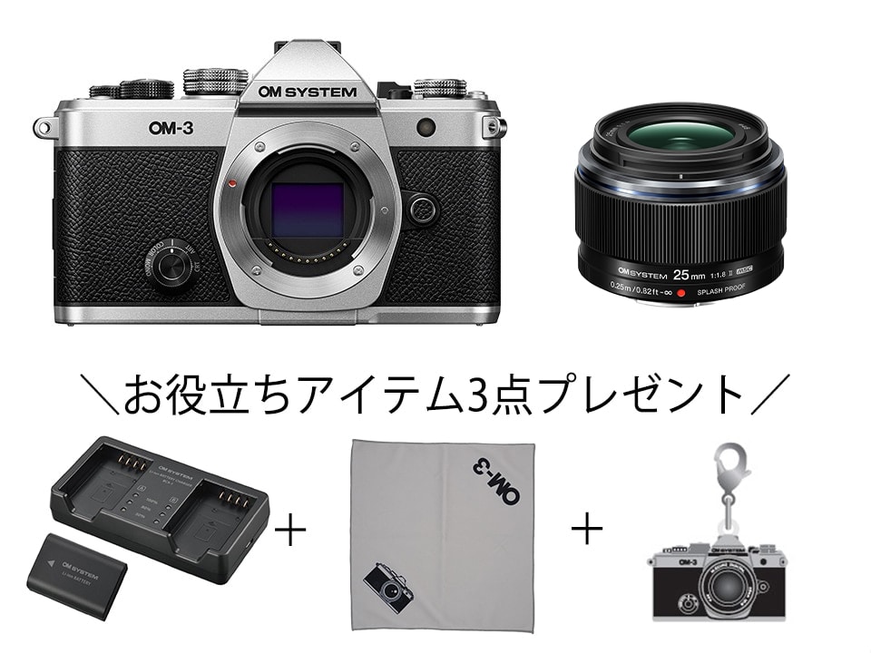 選択されたバリエーション:【3月16日(月)まで】OM-3 ボディー + M.ZUIKO DIGITAL 25mm F1.8 II + SBCX-1セット