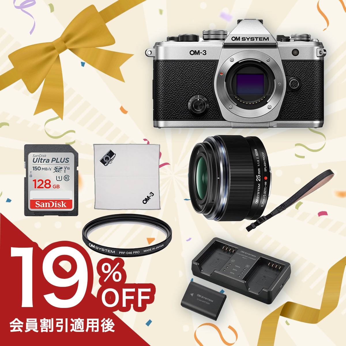 往年のフィルム一眼レフカメラ調の普遍的な美しいデザインにフラッグシップカメラ同等の機能を搭載した「OM-3」に、美しい背景ボケを手軽に楽しめる「25mm F1.8 II」を付けたお得なセット。