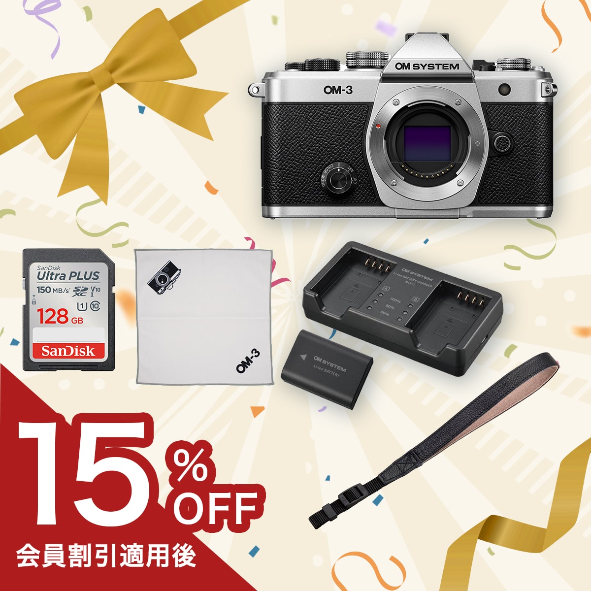 往年のフィルム一眼レフカメラ調の普遍的な美しいデザインにフラッグシップカメラ同等の機能を搭載した「OM-3」のお得なセット。