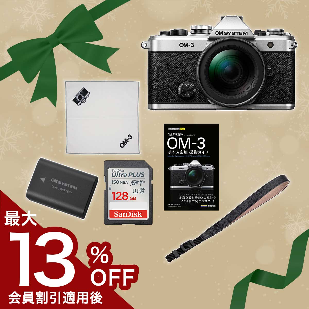 往年のフィルム一眼レフカメラ調の普遍的な美しいデザインにフラッグシップカメラ同等の機能を搭載した「OM-3」に小型軽量を実現した高性能・標準ズームレンズを「ED 12-45mm F4.0 PRO 」を付けたお得なセット。