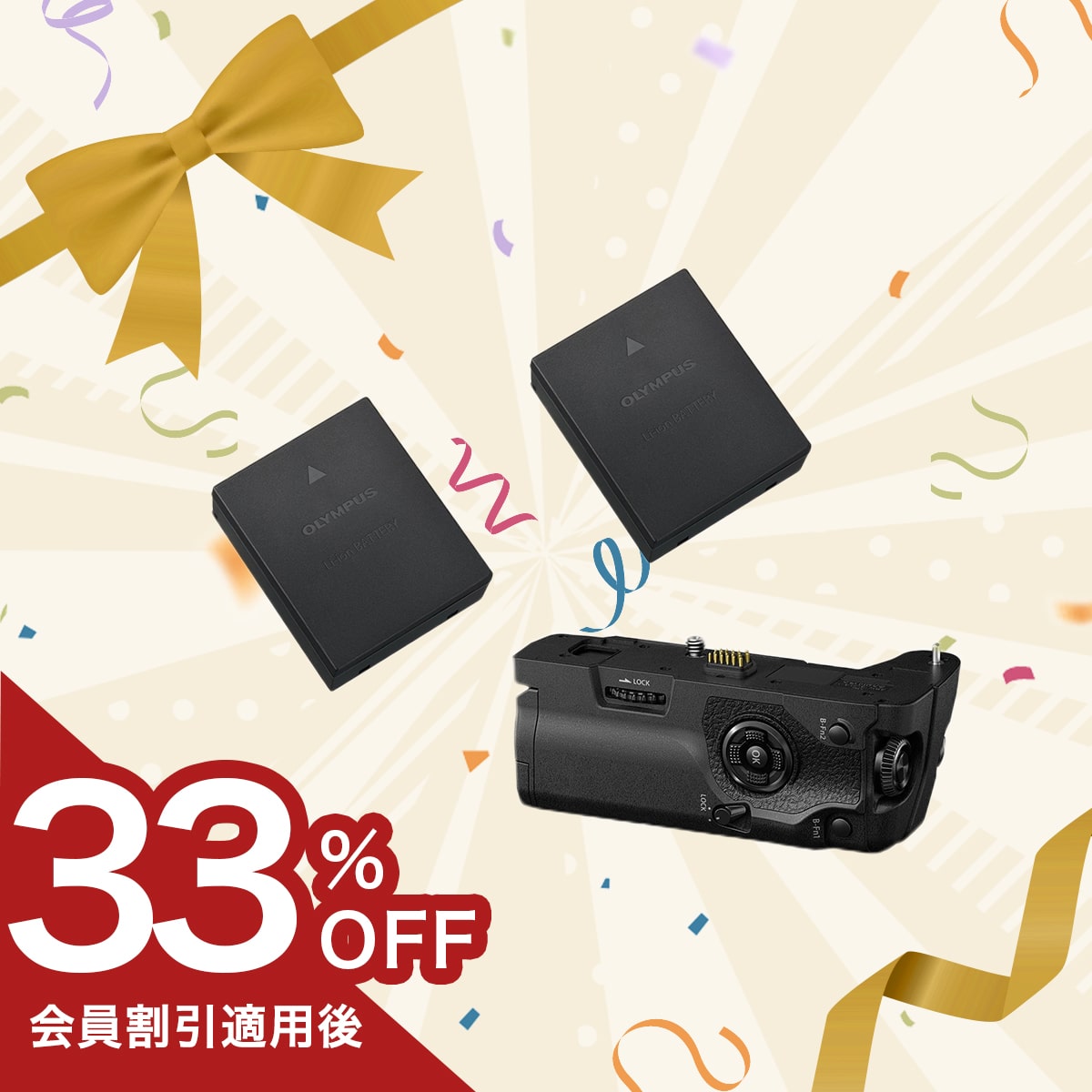 「E-M1」シリーズのバッテリーホルダーに、充電池が2個付いたお得なセット。